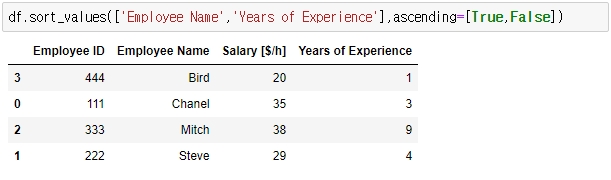 ascending=도 순서대로 True,False로 적어주시면 됩니다.