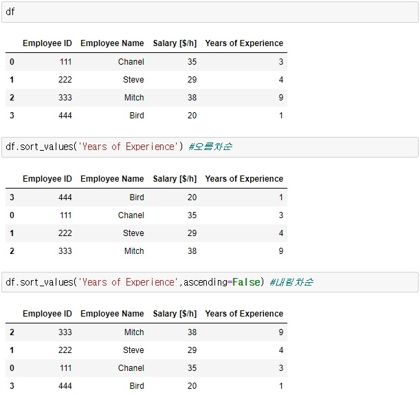 내림차순으로 하려면 ascending=False를 적어주시면 됩니다.