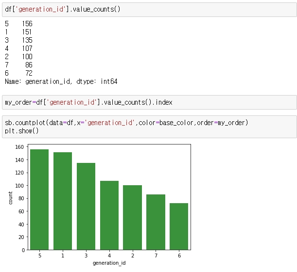 value_count() 함수를 이용해 세대별 데이터수를 측정후 그걸 변수에 저장해주고 파라미터 order= 에 변수를