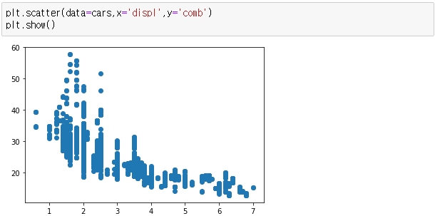 배기량과 연비의 관계를 차트로 시각화 하려고 합니다.