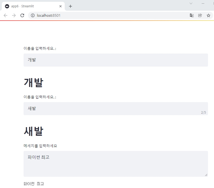 name2 = st.text_input('이름을 입력하세요. : ',max_chars=5)