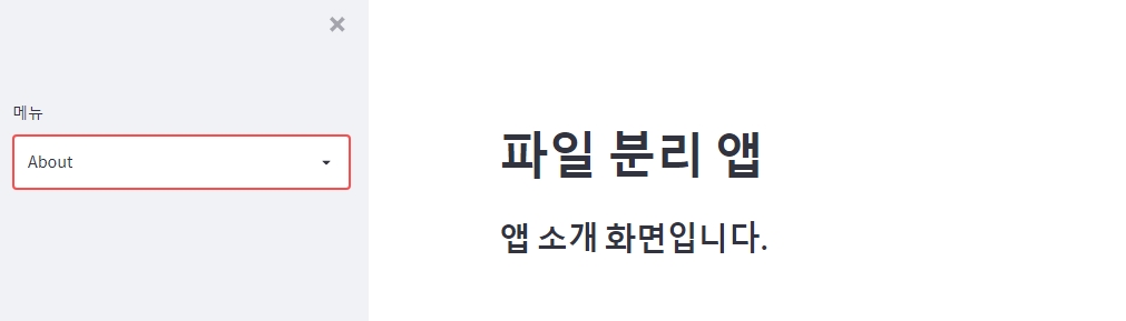 st.subheader('앱 소개 화면입니다.') #나머지 About 선택시 실행