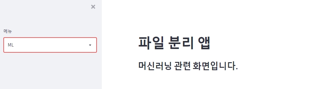 choice = st.sidebar.selectbox('메뉴',menu) #사이드바에 메뉴를 선택할 수 있는 박스 만들기