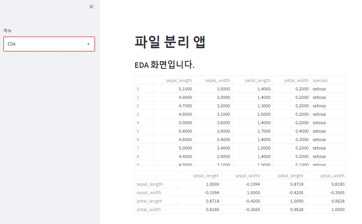 이렇게 eda_app.py 와 ML_app.py를 만들어주었습니다.