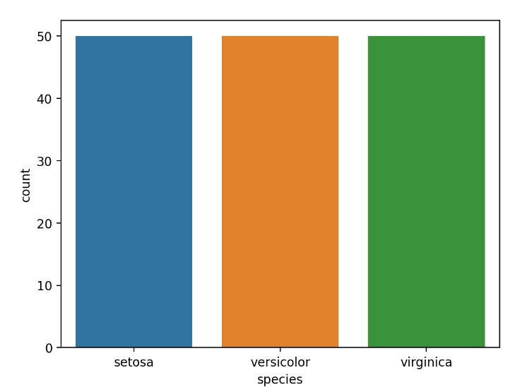 # species 컬럼에는 종 정보가 들어있는데 각 종별로 몇개씩 있는지를 차트로 나타내기