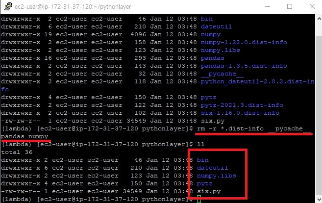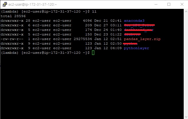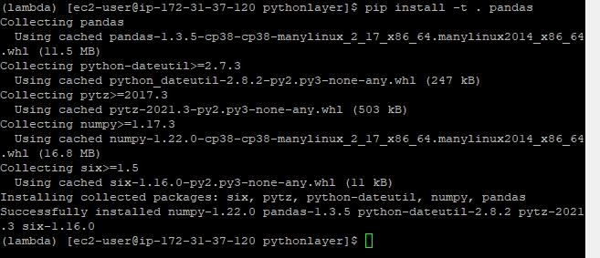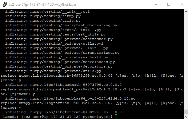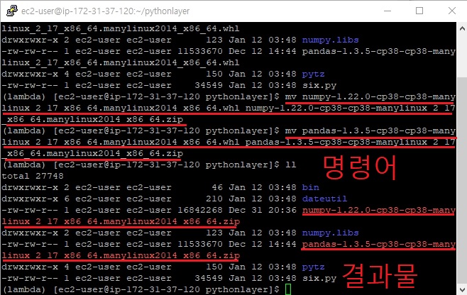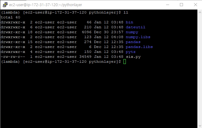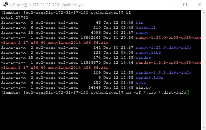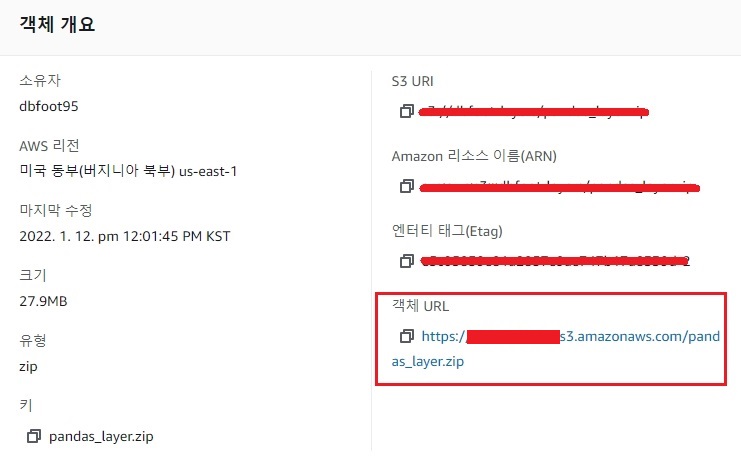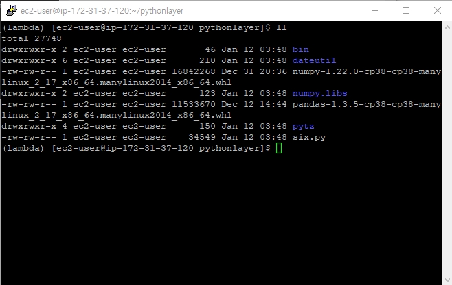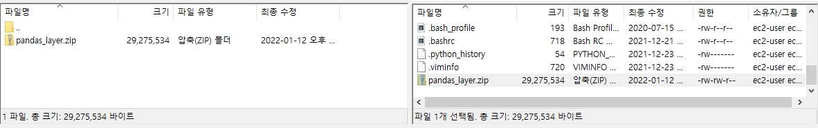 다운 받은 zip파일이 경로 세팅이 잘됐나 확인도 해줍니다.(pandas_layer.zip\python)
