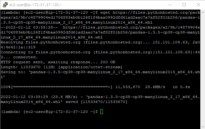 9. 아마존의 리눅스에서 설치될 판다스와 넘파이 파일을 다운로드 한다
