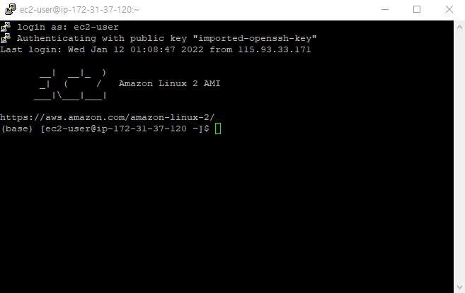 12. 복사한 링크 주소를 putty로 가서 ec2에 다운로드 받는다