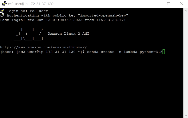 3. lambda의 환경이 파이썬3.8 이므로 가상환경을 파이썬 3.8으로 만들어준다
