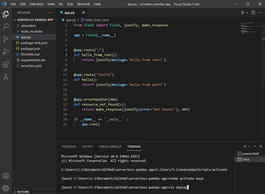 밑에 터미널에 sls deploy 를 실행하면 됩니다.