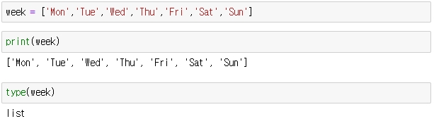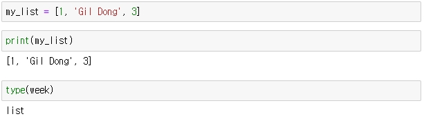 아래는 문자열 데이터 ( str ) 를 넣은 리스트와, 정수 데이터 ( int ) 를 넣은 리스트를 생성하는 방법입니다.