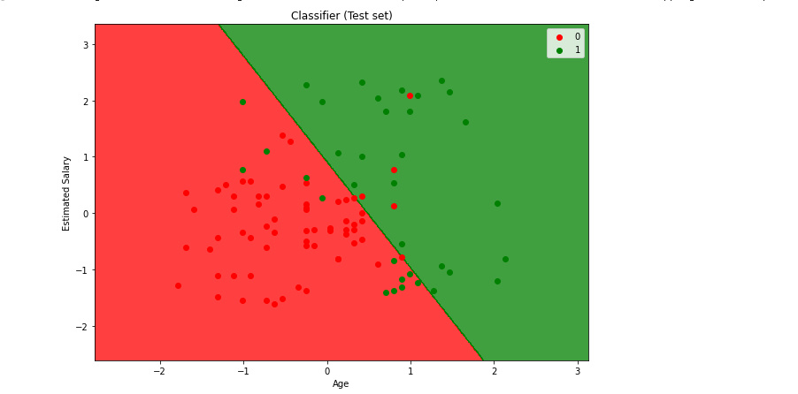 X1, X2 = np.meshgrid(np.arange(start = X_set[:, 0].min() - 1, stop = X_set[:, 0].max() + 1, step = 0.01),