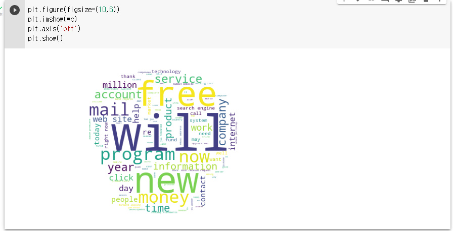 스팸만 들어있는 이메일의 내용을 가져와서 화면에 어떤 단어가 많이 나왔는지 시각화 하려 합니다.