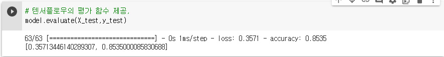 # 텐서플로우의 평가 함수 제공,