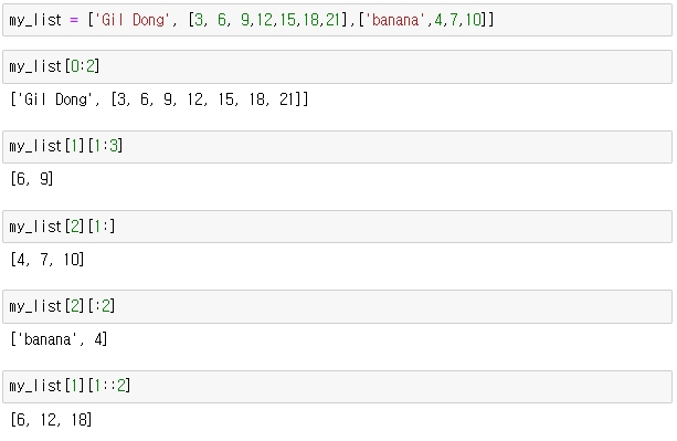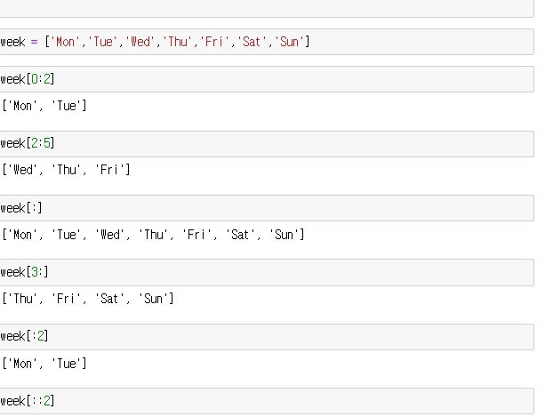리스트에서 원하는 부분을 추출(슬라이싱) 하기