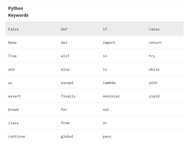 - 다음의 예약어는, 우리가 마음대로 변수로 사용할 수 없는 것들이다.