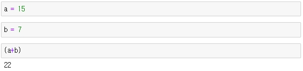 a 변수에 숫자 15를 저장한다. 라고 생각하시면 됩니다.a에 15, b에 7를 저장하고 a와b를 더하면 변수에 저장된 값이 연산되서 출력됩니다.