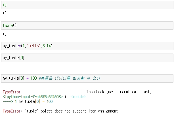 튜플의 특징은 데이터를 변경할 수 없습니다.