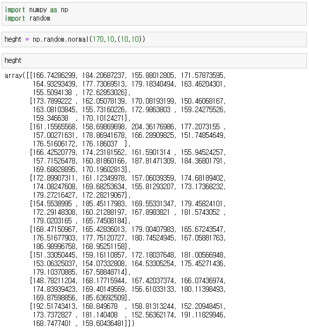 np.random.normal(mean, standard deviation, size=shape) (평균,표준편차,행렬의차원)