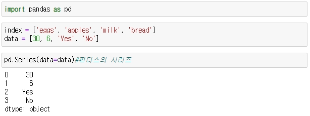 ※ 판다스의 1차원 데이터를 Series(시리즈) 라고 부릅니다.