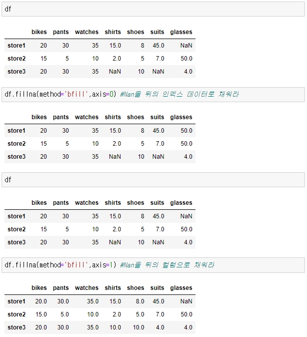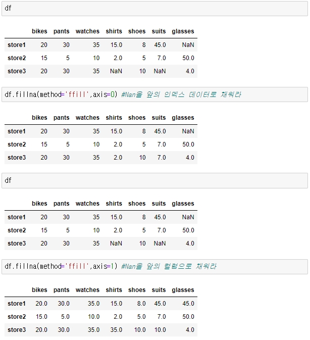 3. NaN데이터 다른 데이터 값으로 대체해서 채우는 방법