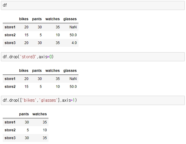 axis= 0은 행(index) 1은 열(coluems) 입니다.