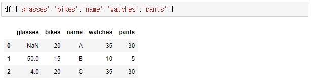 컬럼 순서 변경은 데이터 액세스 기호 [ ] 를 이용해 원하는 순서로 다시 설정할 수 있습니다.