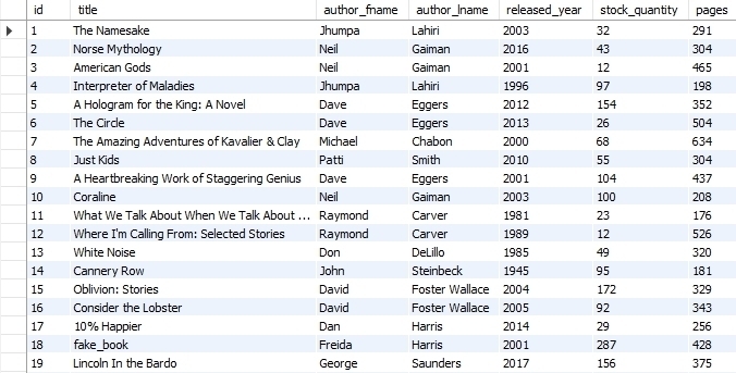 INSERT INTO books (title, author_fname, author_lname, released_year, stock_quantity, pages)