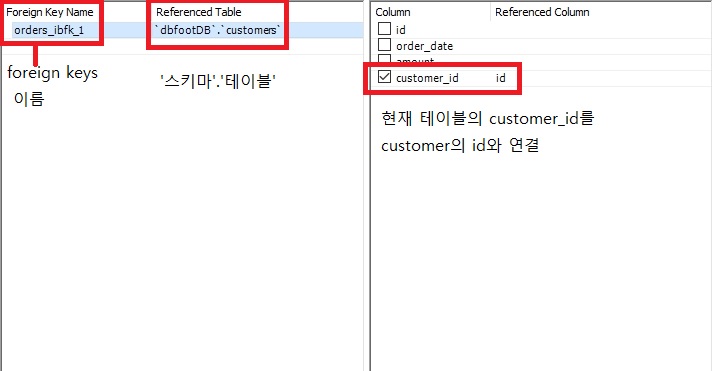 foreign key(customer_id) references customers(id) -- foreign key설정
