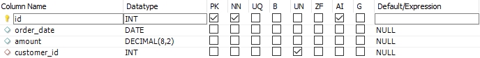insert into orders (order_date, amount, customer_id)